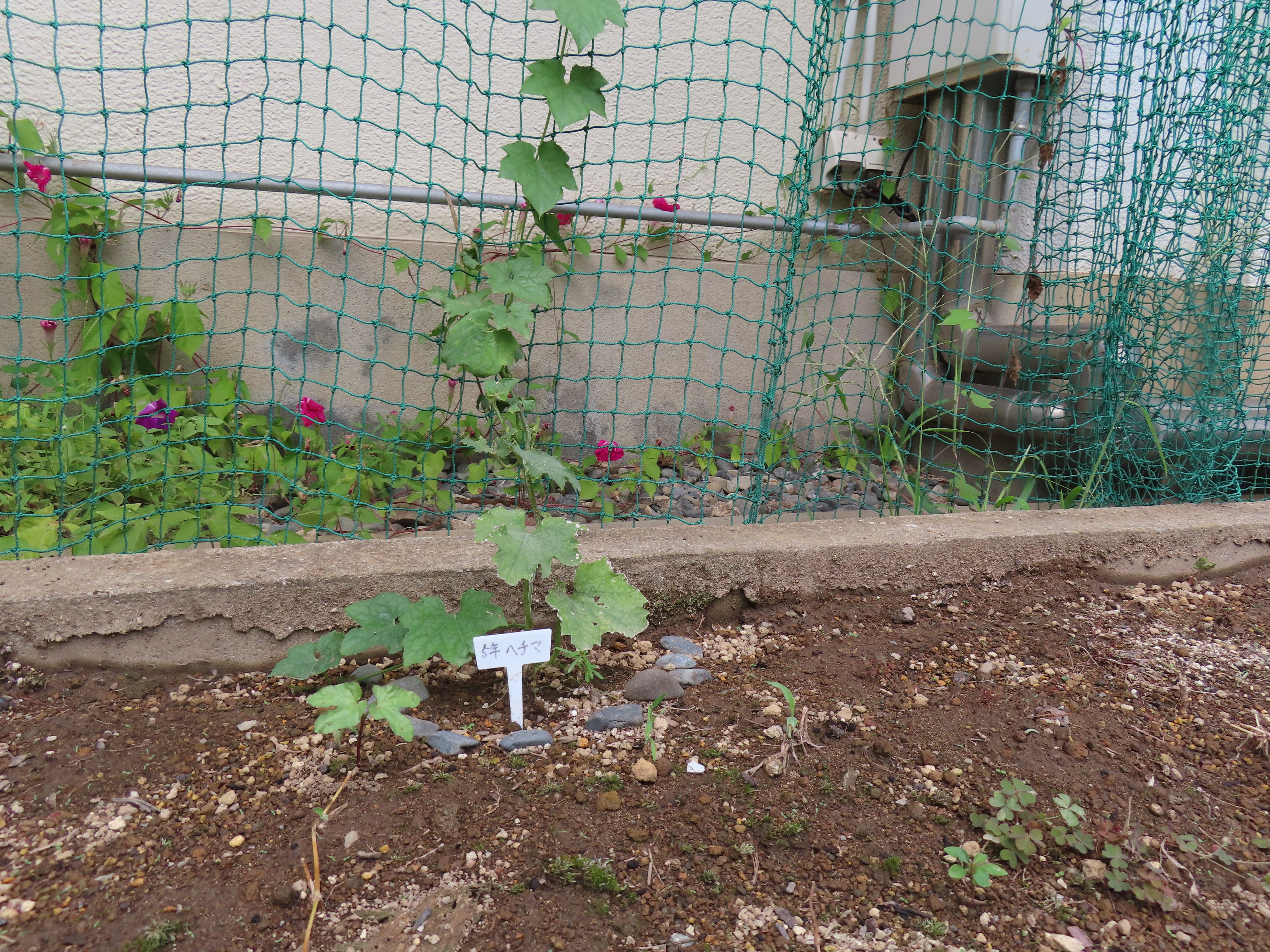 花壇の一角には、5年生が育てているヘチマが植えられています。