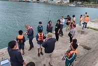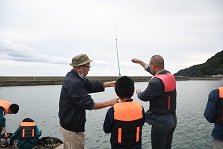 5限の授業後は、「ツアー班」と「魚部」を中心に、海で釣り体験をしました。