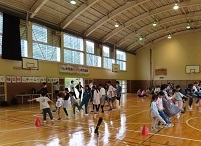 第2部は、小学3・4年生の企画・運営によるレクリエーション「シンクロゲーム」を行いました。出されたお題に合うように一斉にポーズをとり、チーム内で同じポーズが多いほど高得点!というゲームです。ポーズが揃うように、気持ちを揃えようとする姿が見られ、楽しく交流することができました。
