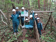 その後、学校林に入って現状を視察し、山の厳しさと山の恵みを体験しました。