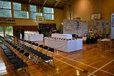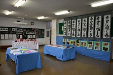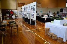 体育館には、地域の方が制作した作品や行事の記録、農作物等がずらりと並びました。いつもの元気に体を動かす場としての体育館もいいですが、芸術の秋仕様の体育館もとても素敵でした。