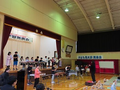 小学1・2年生の音読劇「くじらぐも」に始まり、小学校全校児童による合奏、中学校全校生徒による合唱を行いました。