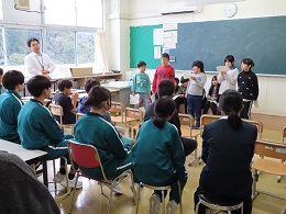 発表後は、「相手の目を見て話した方がいい」「フラフラしない方が格好いい」「話す早さは丁度いい」「笑顔が出るといい」など、上級生からたくさんの助言や感想をもらいました。