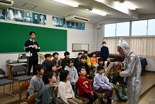 12月4日(木)、読書週間に合わせて、ヨミキカ星から「ヨミキカ星人」がきてくれました。心優しい「ヨミキカ星人」が、絵本の読み聞かせ、弾き語り、手遊び等で子どもたちに笑顔を届けてくれました。