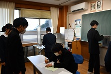 12月18日(木)は、生徒会役員選挙の投票日でした。立候補者が最後の演説をした後、選挙管理委員の進行のもと、厳粛な雰囲気の中で投票しました。