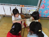 2月5日(木)に、新入生体験入学を行いました。1・2年生の企画・運営により、「読み聞かせ」「パタパタ車」「宝探し」で交流しました。