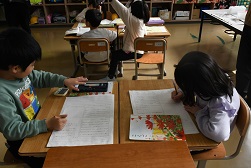 複式授業のため、子どもたちが自分の力で学習を進める時間があります。